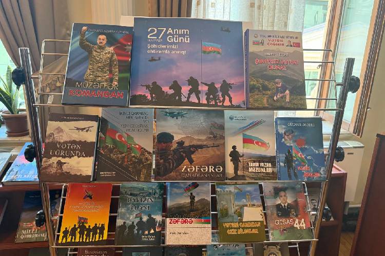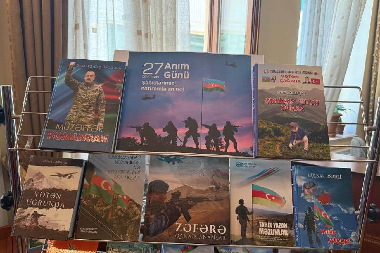 Bundan əlavə, Prezident Kitabxanasının Oxu zalında Anım Günü ilə bağlı kitab sərgisi də təşkil olunub. Bu sərgi virtual platformanın tamamlayıcısı kimi oxuculara nəşrləri yerində tanımaq və bilik əldə etmək imkanı yaradır. Sərgidə xüsusi diqqət çəkən əsərlərdən biri “Memorial. Vətən müharibəsi şəhidləri” adlı kitabdır. “YAŞAT” Fondunun dəstəyi ilə çap olunan bu nəşrdə 44 günlük Vətən müharibəsində və sonrakı dövrdə şəhadətə ucalmış 957 qəhrəman haqqında məlumatlar yer alıb. Azərbaycan Respublikası Müdafiə Nazirliyinin rəsmi məlumatları əsasında tərtib olunan bu kitab şəhidlərin xatirəsini əbədiləşdirən mühüm sənəddir.