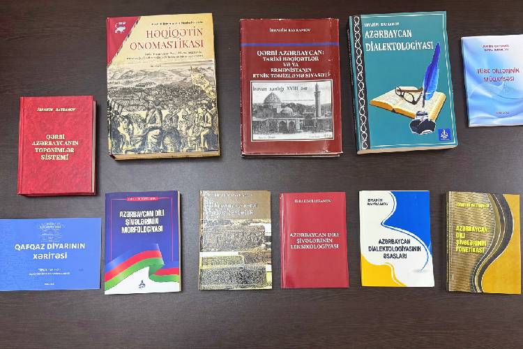 Профессор Ибрагим Байрамов подарил Президентской библиотеке недавно изданные книги «Морфология диалектов азербайджанского языка» (Анкара, 2019), «Лексикология диалектов азербайджанского языка» (Баку, 2020), «Сравнение тюркских языков» (Баку, 2020, совместно с Алмаз Бадаловой), «Азербайджанская диалектология» (Анкара, 2021), «Историческая азербайджанская земля Западный Зангезур» (Анкара, 2023) и их электронные версии.